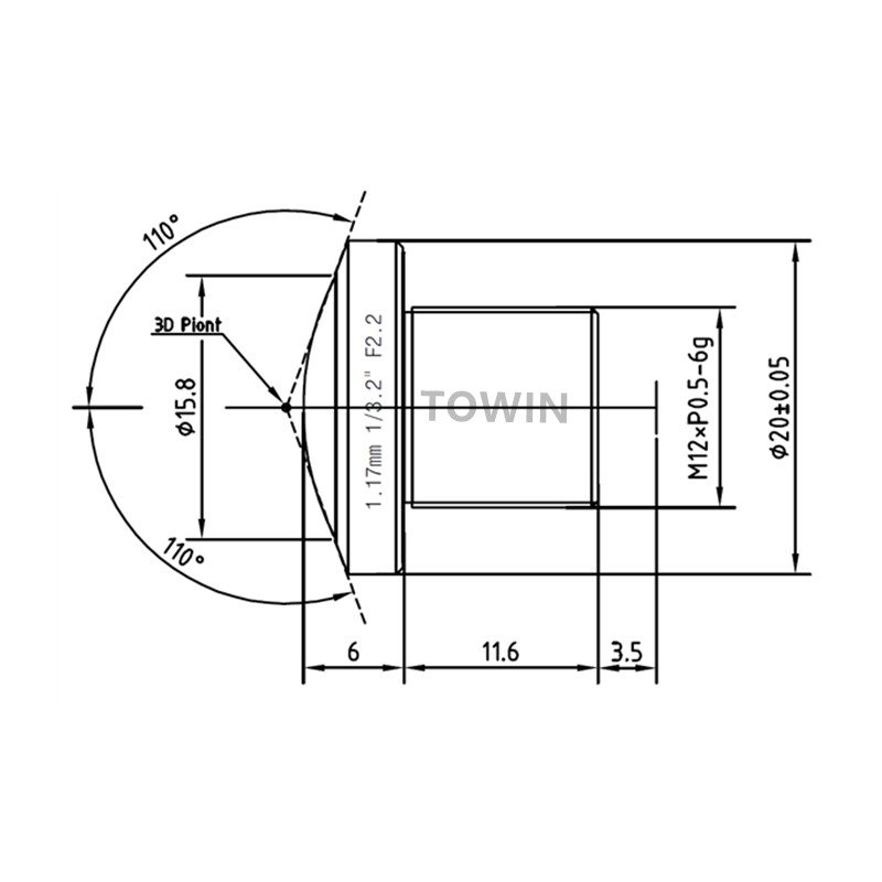 Standard M12x0.5 thread mount, compatible with most M12 interface camera modules.